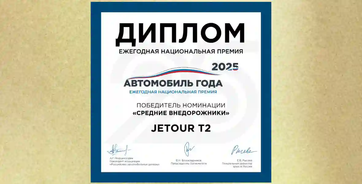 Ежегодная национальная премия «Автомобиль года в России» была впервые вручена в 2000 году и за минувшие четверть века превратилась в один из наиболее значимых медийных проектов российского автомобильного рынка. Определение лауреатов проводится интернет-голосованием, в котором может принять участие любой желающий россиянин старше 18 лет. Конкуренция в номинации «Средние внедорожники» оказалась очень высокой – на это звание претендовали сразу 74 автомобиля с традиционными ДВС, представляющие весь диапазон ценовых категорий, от массового сегмента до сегмента «люкс». Но пользующийся у российских автомобилистов неизменным успехом с момента выхода на рынок JETOUR T2 стал лучшим в номинации.